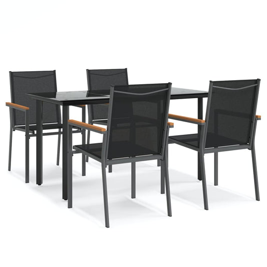 5 Piece Outdoor Dining Set PVC Rattan Black