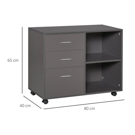 Freestanding Printer Stand Unit Office Desk Side Mobile Storage w/ Wheels 3 Drawers