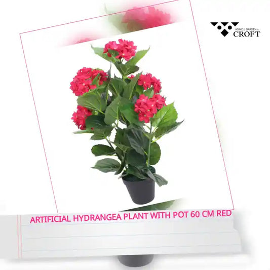 Artificial Hydrangea Plant with Pot 60 cm Red