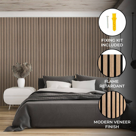 Acoustic Slat Wall Panels x 3 - Light Walnut