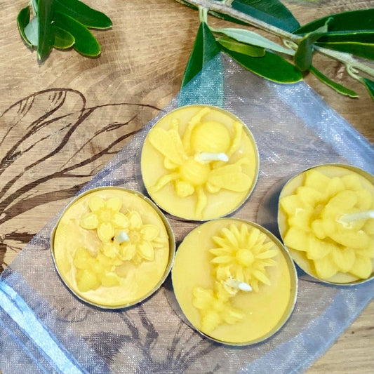Beeswax Bee Tea Lights x 5 with holder- Gift box