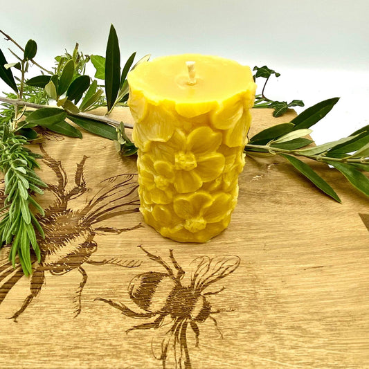 Apple Blossom Floral Pillar Candle- Pure British Beeswax