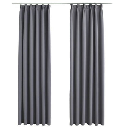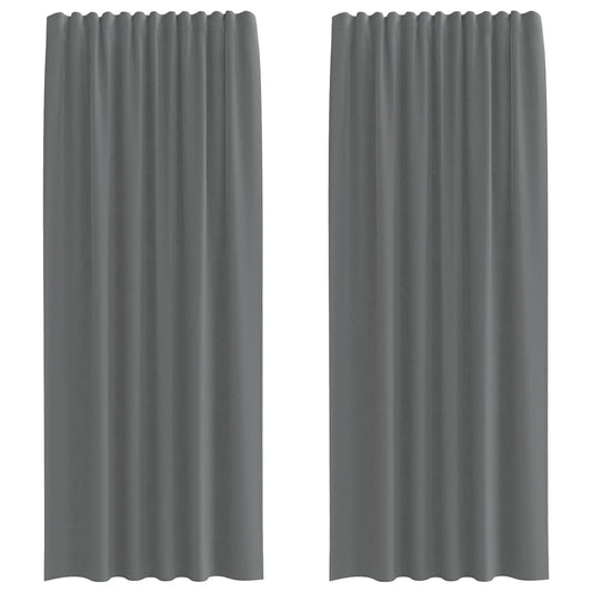 Blackout Curtains with Hooks 2 pcs Grey 140x175 cm