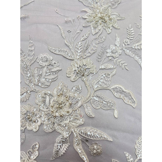 Handmade Bridal Embroidered Beaded Lace Fabric