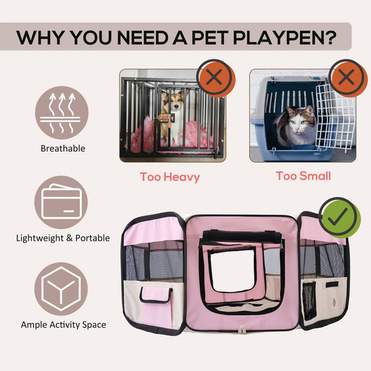 Fabric Dog Pens Pet Puppy PlayPen Dog Crate 37cmx37cmx95cm-Pink/Cream