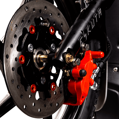 Motorcycle grade front & rear high performance brake system for advanced control.