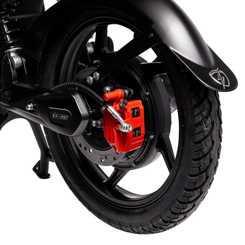 On a single 7-hour charge, it delivers an approximate range of 40-50 miles*. With a dedicated Lithium-ion charger with internal cooling fan and 13amp 3 pin plug it is able to charge anywhere. Crafted on a sturdy electroplated lightweight steel frame, reinforced with impact-resistant body panels, our SX-250 features a digital speedometer and a power level indicator, propelled by high-performance 18" alloy wheels with reinforced tubeless road tyres