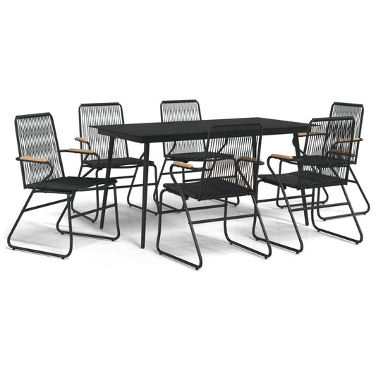 7 Piece Outdoor Dining Set PVC Rattan Black