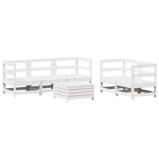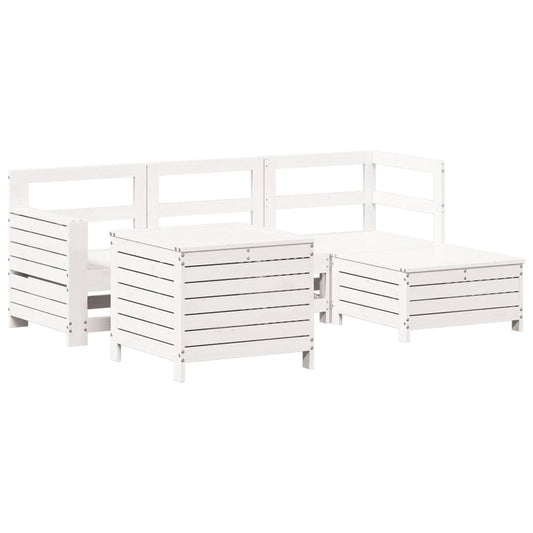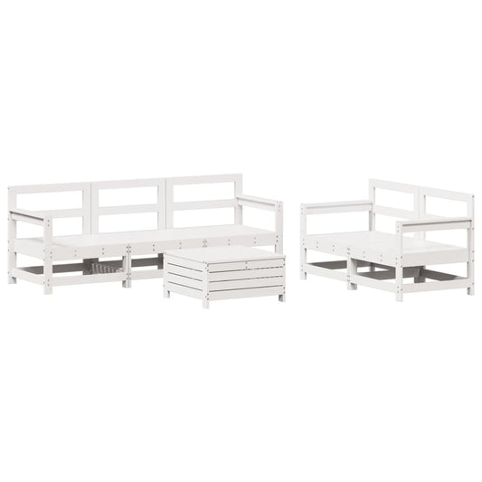 5 Piece Garden Sofa Set White Solid Wood Pine