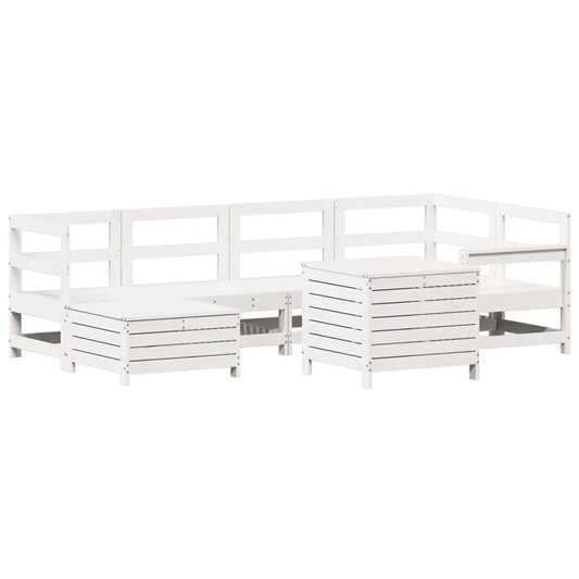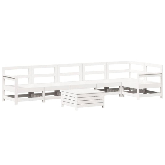 7 Piece Garden Sofa Set White Solid Wood Pine