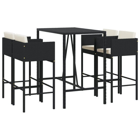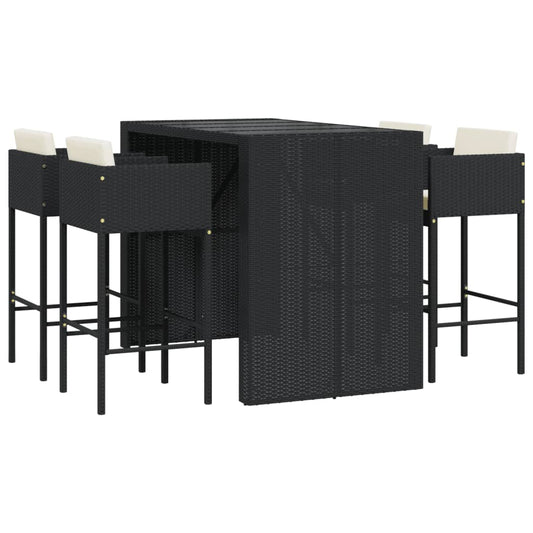 11 Piece Garden Bar Set with Cushions Black Poly Rattan