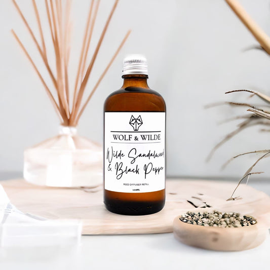 Wilde Sandalwood & Black Pepper 100ML Luxury Reed Diffuser Refill In Amber Glass Bottle