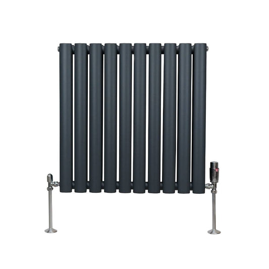 Oval Column Radiator & Valves - 600mm x 600mm Anthracite Grey