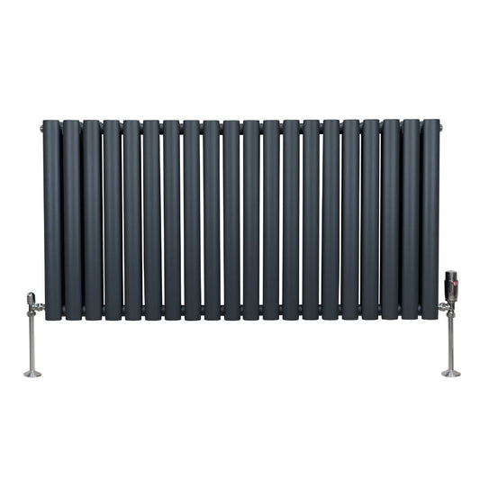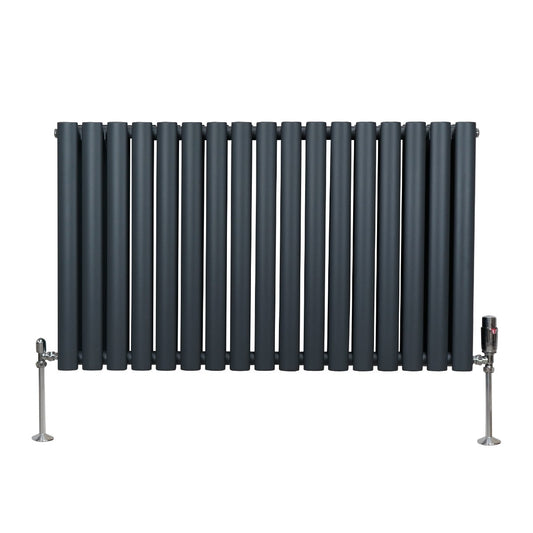 Oval Column Radiator & Valves - 600mm x 1020mm Anthracite Grey