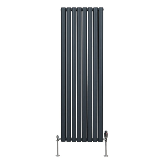 Oval Column Radiator & Valves - 1600mm x 480mm Anthracite Grey