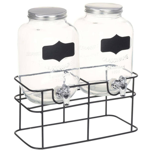 Beverage Dispensers 2 pcs with Stand 2 x 4 L Glass