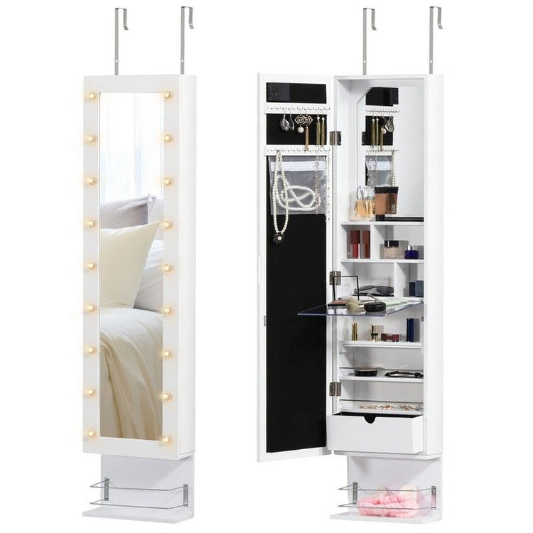Mirror Jewellery Cabinet Wall Mounted White 30x8.5x106 cm
