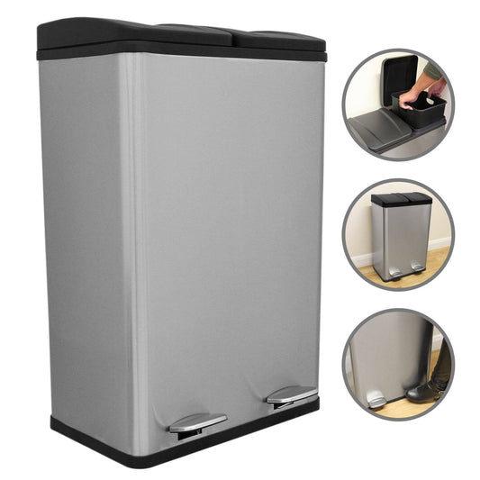 Recycling Pedal Bin Garbage Trash Bin Stainless Steel 54 L