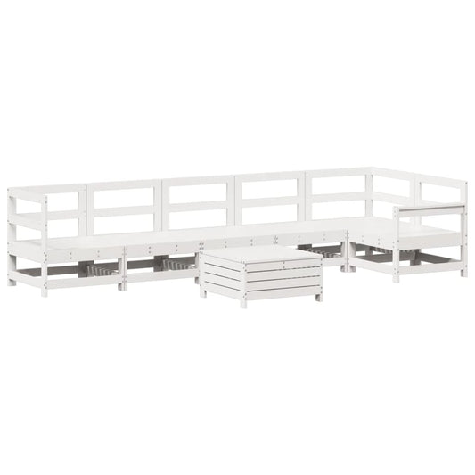 7 Piece Garden Sofa Set White Solid Wood Pine
