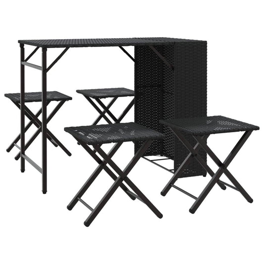 5 Piece Garden Dining Set with Cushions Black Poly Rattan