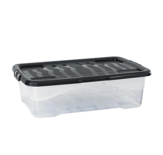 Plastic Storage Box 50 Litres Large - Clear & Black by TML