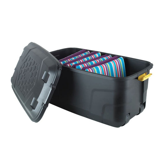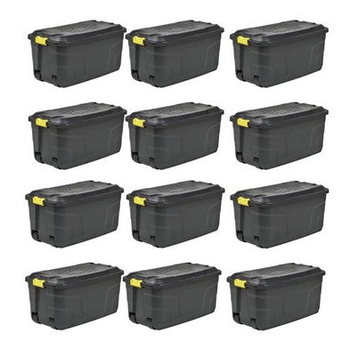 12 x Plastic Storage Box 2 Wheels 190 Litres Extra Large - Black Heavy Duty by Strata