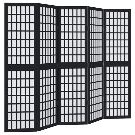 Room Divider 5 Panels Black Solid Wood Paulownia