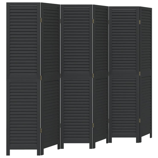 Room Divider 6 Panels Black Solid Wood Paulownia