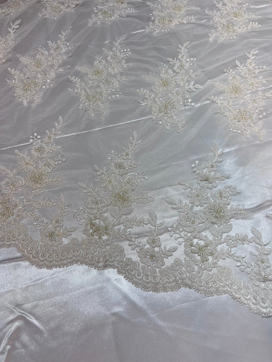 Handmade Bridal Embroidered Beaded Lace Fabric